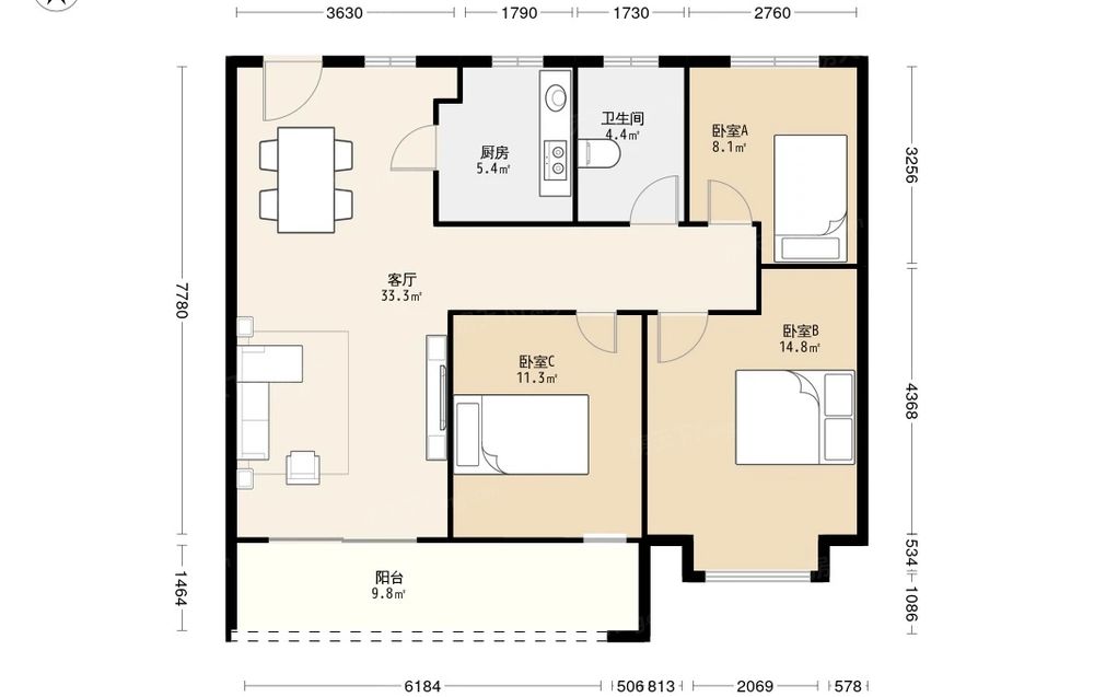 3室2厅1卫