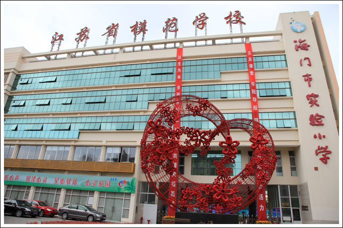 海门市实验小学创建于1906年,是在海门历史上长盛不衰的一所百年名校。学校硬件设施一流,师资力量雄厚。共有48个教学班,2600多名学生,教职工200多名。学校培养了许多优秀的人才,比如卞之琳、王个簃等。学校曾先后出了四位特级教师,其中姜敏是现海门市妇联主席,许新海在市教育局工作。学校有多位一级教师,同样有许多青年骨干教师多次被评为海门市、南通市先进工作者。学校有教学楼3幢,综合楼(能仁楼)一幢,设有3间微机房、4间音乐教室,拥有面积将近1公顷的的大操场,设有足球场和篮球场,并配有海门首创的全塑胶跑道。2008开始准备新建一幢教学楼和一幢食堂。每个学期,学校都会引进数十位教师。从2007年9月开始,学校开设了新课——生活英语课,并聘请了两位菲律宾籍英语教师来为学生们授课。在一批奋进钻研的领导班子下,相信实小的明天一定会更加辉煌,更加美好灿烂。